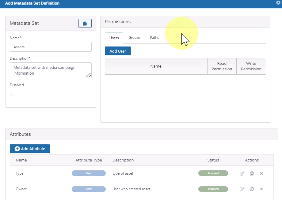 Administrators can use FileCloud Server to set the paths that metadata applies to. The metadata can only be applied to files and folders located on that path.