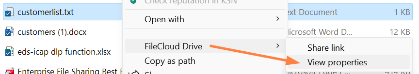 In Drive, you can view and download all versions of a file by right-clicking it in content explorer and choosing Show more options > FileCloud Drive > View properties: