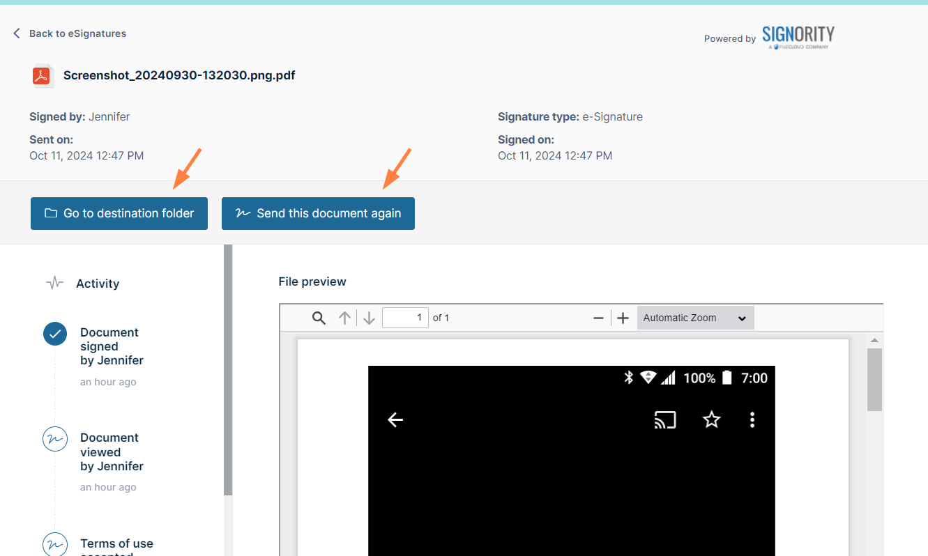 - To open the request in Signority, click View in Signority.