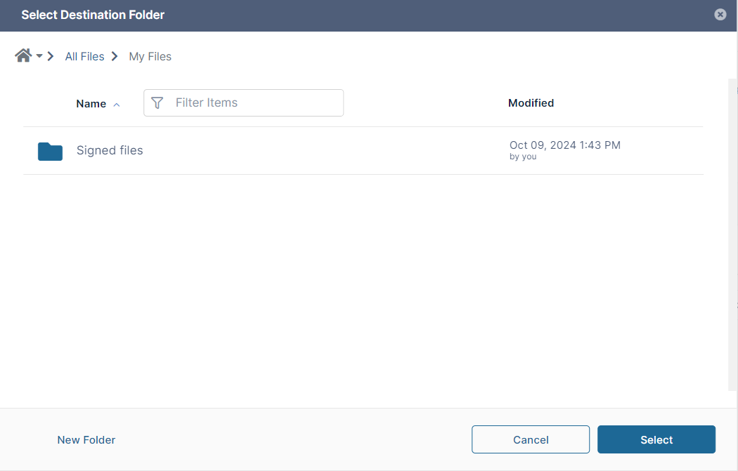 - To open the destination folder for the signed file, click Go to destination folder.