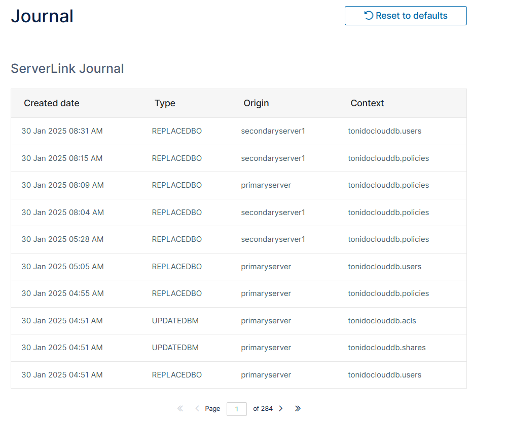 To access other pages of ServerLink information, in the inner navigation bar on the left of theSettingspage, expand theServerLink menu, and click the name of the ServerLink page.