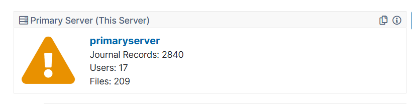 Last pull date older than the given threshold This indicates that the secondary node is not communicating with the primary node. If the last pull date was older than the error threshold, an error icon is shown; if the last pull date was older than the warning threshold but more recent than the error threshold, a warning icon is shown.