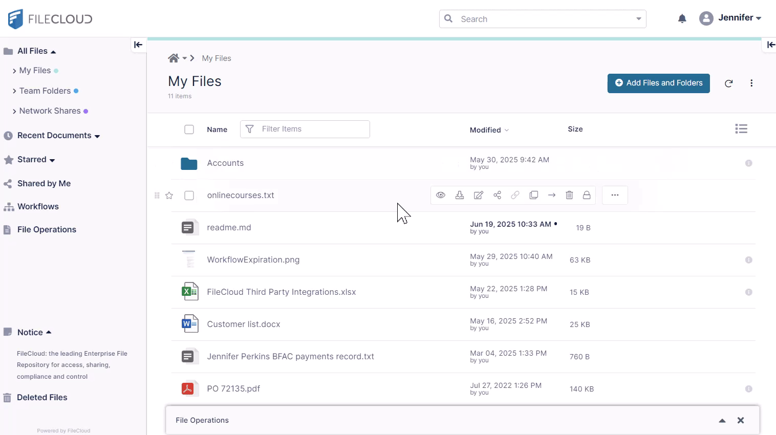 To perform a Web Edit, hover over the file and click the