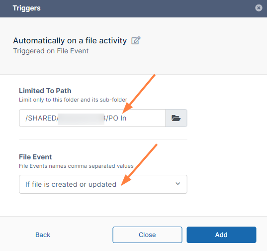 In File Event, choose If a file is created or updated.